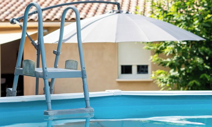 fenced garden with above ground swimming pool of 5 m of diameter on 1 m 20 of height with a removable ehelle.
