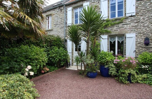 Semi-detached house. On the ground floor, living room with fireplace insert (TV, Internet, smart speaker). Kitchen (gas hob, oven, microwave, espresso machine, freezer compartment). A bathroom (jet shower) with WC. Upstairs, 2 communicating bedrooms, one of which has a 160x200 bed, and the other, 2 80x200 beds. Washing machine and dryer in the outdoor laundry room. Enclosed gravelled courtyard secured by a gate. Enclosed garden. Garden furniture. Barbecue. Parking. Summer lounge in the old barn with relaxation area and darts game. Gas central heating in addition from October 1st to April 30th (if heating is requested outside the winter period, a flat rate of €30 will be charged). Sheets provided and beds made on arrival. Towels provided. Optional cleaning service. First basket of wood offered then €5 the following ones. Baby equipment. At the end of the Cotentin peninsula and on the outskirts of Cherbourg, Equeurdreville-Hainneville runs along and overlooks the largest artificial harbor in the world. Gateway to the Cap de la Hague, the proximity of the coast will allow you to practice many nautical activities, and fishing on foot is appreciated by fishermen due to the multitude of rocks sheltering various shells. The aquatic center, several parks, hiking trails and other cultural leisure activities will be offered to you in the surroundings.