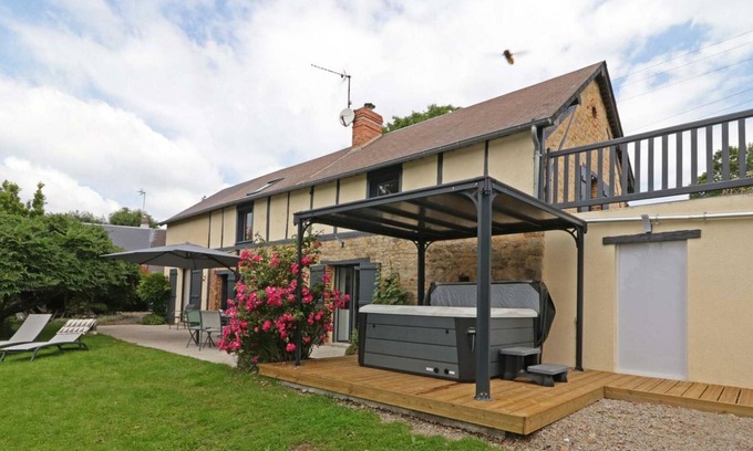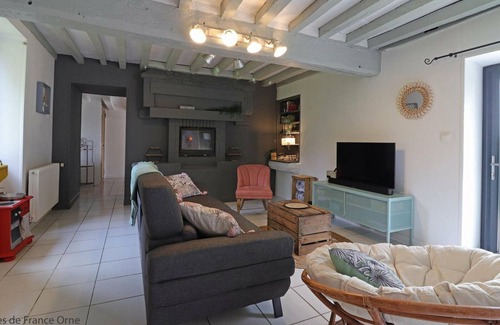 Independent farmhouse. Ground floor: Living room with dining room and lounge (fireplace with insert and wood provided, Orange and Netflix connected TV, bluetooth sound bar), fully equipped kitchen ("Dolce Gusto" pod coffee machine), shower room, water with walk-in shower, separate wc, laundry room. Floor above the living room: bedroom (double bed 160 cm), bedroom (double bed 160 cm separable into 2 beds, single bed 90 cm x 190 cm, desk). Floor by second staircase above the kitchen: bedroom (double bed 160 cm, single bed, desk) with private terrace. Central heating included. 1600 m² wooded garden with terrace and 6-seater spa (including 1 lying down) under pergola, heated all year round. Large offset parasol. Local bicycles and motorcycles. Garden of fruit trees (raspberries, blackcurrants, strawberries, walnuts...), aromatic herbs and small vegetable garden. A panoramic view of the land of stud farms! You will enjoy the shaded spa on the south-facing terrace to contemplate this green landscape in the quiet little village of Cisai St Aubin. 5 km from Gacé with all shops and services. WIFI, Fireplace, Washing machine, Television, Dishwasher, Baby equipment, Mid-Week, Heating included, Sheets included, spa, hammam or sauna, Tumble dryer, Barbecue, Garden furniture, Microwave, Freezer, Linen of House, Terrace, Garden, present tourinsoft, present poplidays, PlanPart, mail ok, Individual House. Option to be paid on site: CLEANING PACKAGE: €60. Unless stated, services such as cleaning, bed linen, towels etc. are not included in the price of this rental. If pets are allowed (information in the advertisement), charges may be applicable. Only equipment mentioned in this advertisement are present. Equipment not mentioned are not considered to be present.