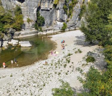 Gite dans une maison en rez-de-chaussée avec piscine is located in Joyeuse, just 20 miles from Ardeche Gorges and 10 miles from Paiolive Wood. The air-conditioned accommodation is 19 miles from Pont d'Arc, and guests can benefit from on-site private parking and complimentary Wifi. The city views are a highlight at the vacation home's pool. Featuring river and garden views, this recently renovated vacation home features 2 bedrooms and opens to a patio. Featuring a terrace with mountain views, this vacation home also includes a cable flat-screen TV, a well-equipped kitchen with an oven, a microwave, and a toaster, as well as 1 bathroom with a walk-in shower and a hair dryer. The property has an outdoor dining area. Outdoor play equipment is also available at the vacation home, while guests can also relax in the garden. Chauvet Cave is 19 miles from gite dans une maison en rez-de-chaussée avec piscine, while Casino de Vals-les-Bains is 19 miles from the property.