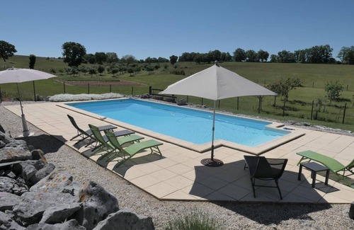 Large detached quercynoise house located in a hamlet, quiet, away from any traffic, renovated in 2013. Gite de France, classified 3 épis. Close to Gramat, on the causse rich in dry-stone buildings. A balcony to the east, a 35 m2 terrace to the west with pergola, garden furniture and barbecue. Private swimming pool of 11mx5m, equipped with an alarm in closed ground with direct access from the private garden of the gite. Private shaded garden and garden furniture. Site of the owner : http://www.gitedechalvet.fr/Kitchen area - living room - lounge with fireplace, small lounge with library, 1 bedroom 1 bed 1.40m with shower room and toilet, 1 bedroom 1 bed 1.40m, 1 bedroom 3 beds 0.90m including 2 twin beds detachable, bathroom, toilet with washbasin, enclosed terrace communicating with the living room-kitchen (38 m2), balcony. Electric heating. Swimming pool with alarm and fenced. Land, private garden with trees, barbecue, garden furniture. Rental from Saturday to Saturday. Sheets can be provided on request.