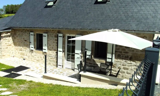 Accommodation: The cottage "La maison de Thienot" consists of:In DRC: A beautiful living room with a seating area, living room, a fully equipped kitchen. A bathroom with separate toilet and washing machine.Upstairs: a double bedroom with 140 bed and a mezzanine bedroom with 90 bed. (climated)Some options are not included in the price (supplement to be foreseen) Charming stone house covered in slate, furnished and tastefully decorated, with air conditioning in the rooms Quiet, but 5 minutes from all amenities (Tulle 10 km). Ideally located for the discovery of the department. Land : 125 m2From June a Jacuzzi run by the owner will be at your disposal to relax in a quiet and relaxing environment (from 10am to 10pm). Jacuzzi opened from 01 JUNE to 15 SEPTEMBER. Price Includes: ElectricityHousehold Price Not Included: Bedding 20€/living room double bedBedding 10€/living room single bedToilet linen 5€/pers/stay