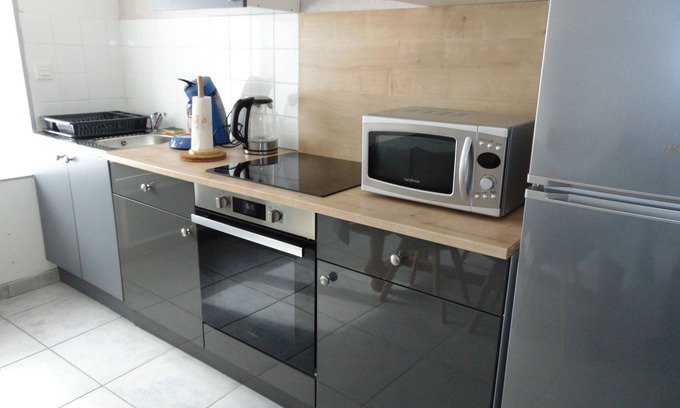 Prepare a home-cooked meal in the kitchen, complete with an oven, a stovetop, and a refrigerator, as well as a coffee maker, an electric kettle, and a microwave. Bathroom amenities include a hair dryer, towels, and toilet paper. And you won't have to pack extra clothes, because you'll also have a washing machine. Other amenities at this 1-bedroom, 1-bathroom rental include a BBQ grill, bed sheets, an ironing board, and heating.