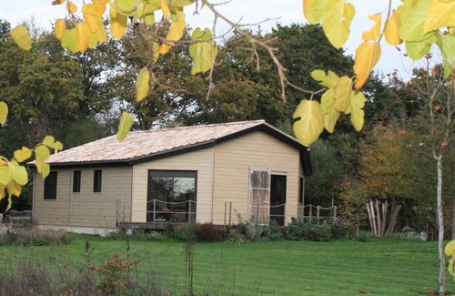 This 85 m2 house opens to the south west on a wooden terrace (closed) and the lake. It offers a large living space connected to the fully equipped American kitchen. Located on a large plot (5000m2) with trees, not enclosed with a small body of water, at the exit of the village in a village.