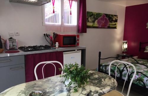10 miles from Chateauroux Shooting Center in Ardentes, Gite des 2 arbres de la sagesse, agréable chalet avec spa privatif provides accommodations with access to a hot tub and spa facilities. This property offers access to a terrace and free private parking. Guests can use free bikes. This air-conditioned country house comes with a dining area, a fully equipped kitchen with a microwave, and a flat-screen TV. Guests can enjoy a meal on an outdoor dining area while overlooking the garden views. For added privacy, the accommodation features a private entrance. Guests can relax in the garden at the property. Val de l'Indre Golf Course is 19 miles from the country house, while Dryades Golf is 24 miles away. Poitiers-Biard Airport is 79 miles from the property.