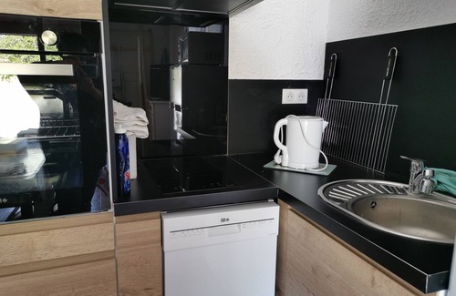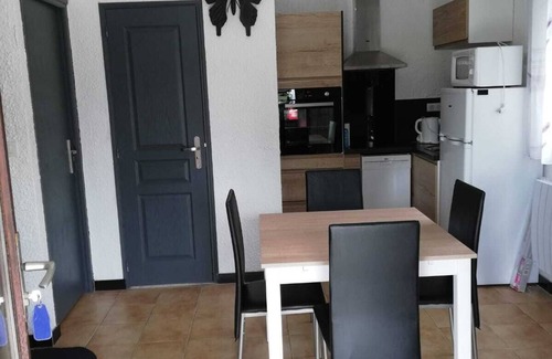 At the heart of Black Perigord and in a set of 10 pavilions, we propose you a pavilion of 5 people composed of 2 rooms, one with bed of 140 and one with 1 bed mezzanine of 90 and a bed of 140, room of water, wc, kitchen, living room, TV, tennis court, swimming pool, barbecue.