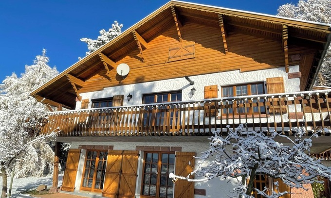 In a green setting, 12km from the wine route, 18km from the Lac Blanc ski slopes & 20km from Colmar. Large chalet with uninterrupted views, ideal for a family holiday with children or friends.