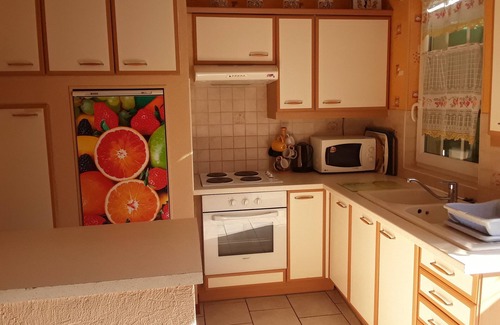 Small cottage in a quiet cul-de-sac with terrace and garden. Dining room / living room and fully equipped American kitchen. Washing machine, microwave, oven, gas heating. TV and DVD, no internet connection. Shower and wc on the ground floor. On the floor two rooms.