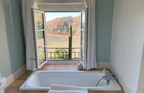 The house opens onto a private, west-facing garden with a furnished terrace (table, chairs, garden furniture) and shaded views of the lavender fields. In summer (from mid-May to the end of September), a large, secure swimming pool (13x6 m) is available to our guests. We also offer a large garden shared with the other gîtes on the property. The property boasts breathtaking views of the surrounding countryside and mountains, as well as the old Romanesque church overlooking the hamlet (illuminated at night). Numerous tables, chairs, deckchairs, and hammocks are available for our guests, perfect for reading a book or admiring the panoramic views. The four gîtes each have a private garden and are completely isolated from each other, respecting everyone's privacy.