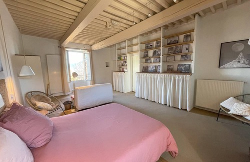 - a very large double bedroom with a double bed (160 x 200 cm) and a sitting area (sofa bed). Panoramic views of the valley from the bedroom;