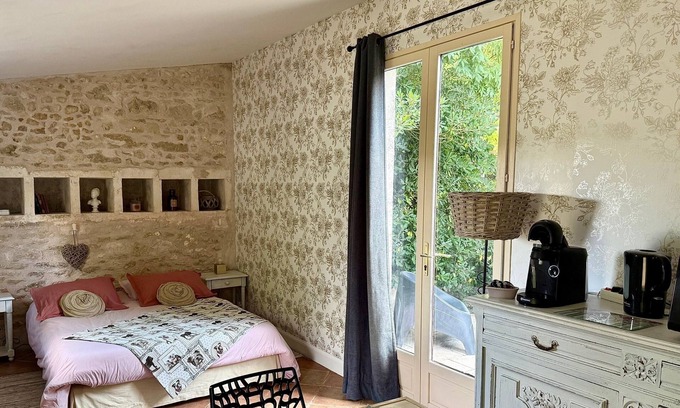 Built around the old pump from the Clos Bernessard well in Saint-Coutant le Grand, this south-facing studio will take you into an atmosphere unique to the mythical Aix island: soft shades to accommodate up to two people. Its massif of Horstensias in the North and its terrace in the South, with a view of the swimming pool, will offer you the cachet and charm expected.