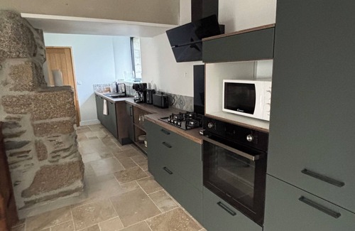 Nestled in Corlay, this 3-bedroom, 2-bathroom vacation home brings it all within your reach. Fans of nature and the outdoors will love being 19 minutes by car from Lake Guerlédan and 39 minutes from Plage du Valais. If you'd like to explore the area, you can make the 18-minute drive to L'Abbaye Notre Dame de Bon Repos or the 23-minute drive to Forges des Salles.