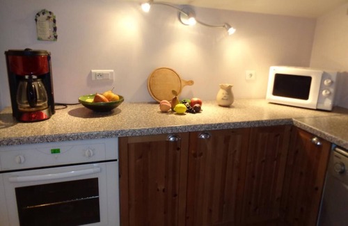 Quiet and face the chain of the Moors in a farmhouse gite designed with care in a contemporary spirit of quality. WiFi. Common ground on a working farm, adjoining the owner, terrace of 40 m² with store, garden furniture, chairs, barbecue. Fan. Opportunity to discover the harvest in September and to attend the vinification. Walks in the forest, village of turtles. Ground floor: Equipped kitchen open to living room with stove wood, DVD, radio cassette, 1 room with 1 bed 2 places (140cm), 1 bedroom with 2 beds 1 place (90cm) illuminated by velux with store shadowing, independent shower room, wc. Electric heating and wood (20 Euro 1/2 yard of wood). Possible 5th person with supplement.