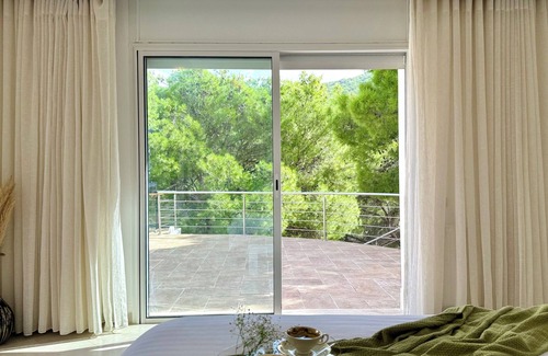La villa offre trois chambres confortables, dont une magnifique suite parentale avec sa propre salle de bain privée. Les deux autres chambres sont spacieuses et partagent une salle de bain élégante. À chaque coin, des espaces de séjour joliment décorés invitent à la détente, que ce soit pour lire, se reposer ou admirer la vue.