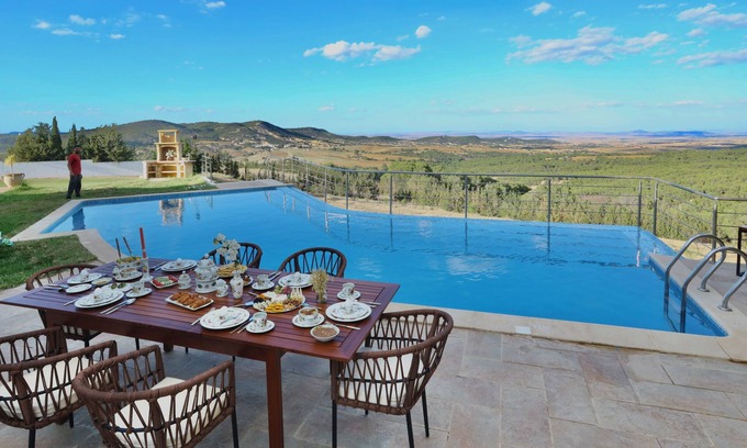 Profitez de l’agréable piscine avec vue panoramique sur les montagnes et le domaine environnant, un lieu idéal pour se rafraîchir tout en se délectant de la nature environnante. Plusieurs coins décorés, avec des fauteuils et salons d'extérieur, vous permettent de vous détendre et de profiter des couchers de soleil en toute tranquillité.