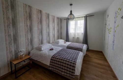 Featuring a garden, Gite Junior L'Ecrin du Ried PROCHE EUROPA-PARK offers accommodations in Artolsheim. Both free Wifi and private parking are available at the vacation home free of charge. Outdoor seating is also available at Gite Junior L'Ecrin du Ried PROCHE EUROPA-PARK. Offering a terrace with garden views, this vacation home also has a cable flat-screen TV, a well-equipped kitchen with a dishwasher, an oven, and a microwave, as well as 1 bathroom with a walk-in shower and a hair dryer. For added privacy, the accommodation has a private entrance and soundproofing. Le Haut Koenigsbourg is 15 miles from the accommodation, while House of the Heads is 17 miles away. Strasbourg International Airport is 32 miles from the property.