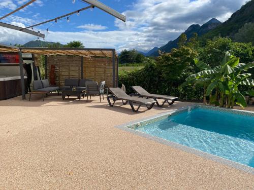 Providing mountain views, Gite L'Ô Bleue in Varces provides accommodations and free bikes. This recently renovated vacation home is located 10 miles from Alpexpo and 10 miles from WTC Grenoble. There's a sun terrace and guests can make use of free Wifi, free private parking, and an electric vehicle charging station. The units at the vacation home come with air conditioning, a seating area, a flat-screen TV with streaming services, a kitchen, a dining area, and a private bathroom with a hair dryer, a hot tub, and free toiletries. An oven, a microwave, and toaster are also featured, as well as a coffee machine and a kettle. At the vacation home, all units include bed linen and towels. The breakfast offers à la carte, continental options and fresh pastries and juice are being served. Guests at the vacation home will be able to enjoy activities in and around Varces, like hiking and walking tours. Guests can swim in the pool with a view, go skiing or cycling, relax in the garden, and use the barbecue facilities. Grenoble Train Station is 10 miles from Gite L'Ô Bleue, while Summum is 10 miles from the property. Alpes–Isère Airport is 37 miles away, and the property offers a paid airport shuttle service.