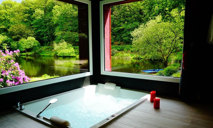 From the spa, enjoy a moment of fun for two with a breathtaking view of the estate and its pond.