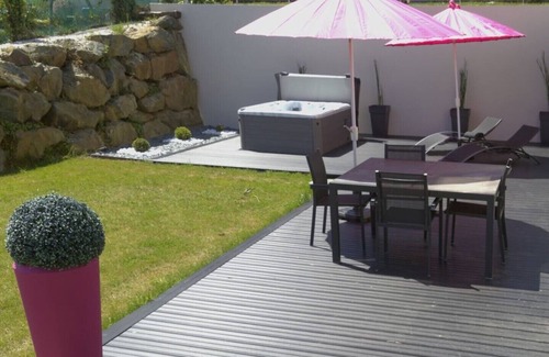 The Suite de la Capitainerie (60m2) is a cottage located in Loguivy de la Mer on the community of Paimpol. This vacation rental offers in its British and cozy decor a fully equipped kitchen, open to living room with flat screen, home cinema system, internet wifi, bathroom with drying washer, bedroom with quality bedding, a terrace facing south 80 m2 with garden furniture, parasol, deckchair, barbecue, and private JACCUZZI SPA for relaxing 35 ° baths. The Harbor Master's suite is classified as 4 clévacances for its contemporary and cozy comfort. Finally, the quality of its environment (seaside, spa, beach, port and shops: grocery store, restaurant, fishmonger) in an atmosphere of serenity and calm is an essential asset. This suite is very appreciated by couples or couples with a young child for its great comfort, its calm and its exposure. A secure parking space is reserved for you.