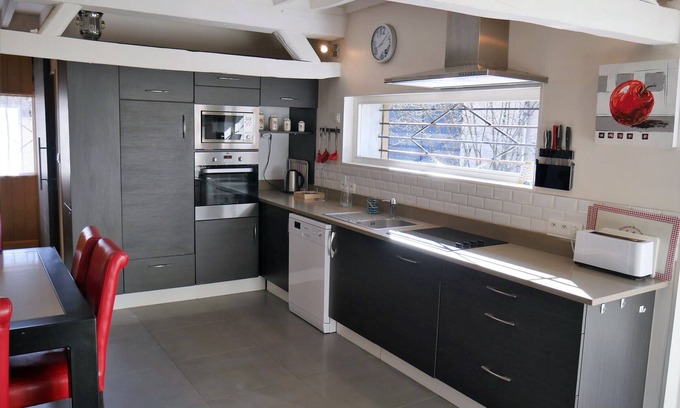 Outside you will find a 30 m² wooden terrace with garden furniture and barbecue, a Jacuzzi (additional charge, €70 per week, from April 1 to September 30) and the 450 m² garden with lawn.