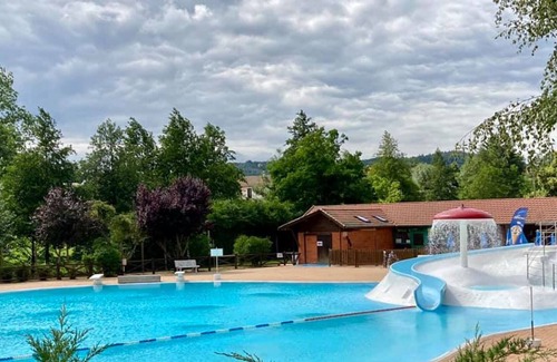 The south-facing wooden terrace invites you to relax. View of the massif. Playground (swings, slide, sandbox, petanque). Dwarf goats. Hikes and mountain bike trails at the foot of the gîte. Proximity to the Livradois Forez Regional Park. Heated summer pool 7 min. Ski resort 20 minutes away to discover the pleasures of skiing in summer and winter. In the center of the Auvergne Rhône-Alpes region, in a quiet hamlet at an altitude of 800 m, former agricultural shed of 100 m² where we wanted to preserve the character of the building (exposed stones, wooden ceiling and floor). On the ground floor: spacious living room (living room + kitchen) with bay windows to enjoy the view of the massif in all seasons, wood stove, laundry room and wc. Free WIFI. Upstairs: bathroom, separate WC and 3 bedrooms. The price includes: - Charges (heating, electricity, gas and water) - The presence of an animal - Tourist tax The price does not include: - End-of-stay cleaning package - Rental of sheets and towels Toilet Television set, DVD player, Mobile phone, Internet access, Hifi, Washing machine, Dishwasher, Microwave, Freezer, Stove, Barbecue/Plancha, Baby equipment, wifi, Terrace, Garden, Animals accepted, Detached house , Outdoor games. Option to be paid on site: Cleaning fee (optional). : 55 €. Pair of sheets for single bed (optional): €7. Pair of sheets for double bed (optional): €8. Rental of towels (optional). : €2.