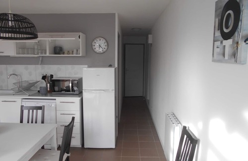 The apartment is composed of a living room with TNT Hertzian TV (1m LED screen), Blue-ray player and DVD.