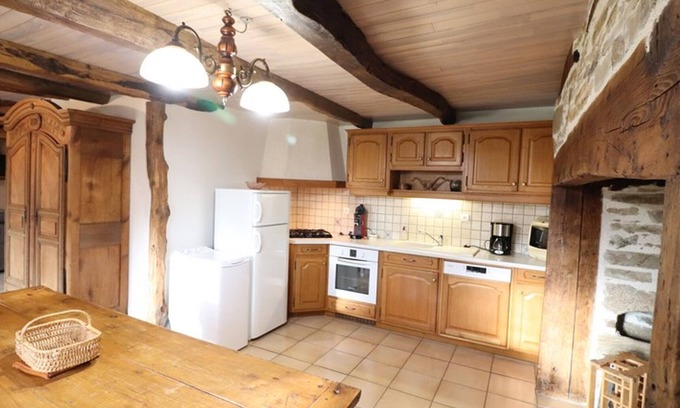On the ground floor, large living room with flat screen TV, hifi system, internet access and fireplace with stove (free wood) offering a warm atmosphere, integrated kitchen area, separate toilet. Upstairs, 1 bedroom with 1 bed 160X200, 1 bedroom with 2 single beds that can be twinned into a double bed, shower room, separate toilet. Sheets provided and beds made on arrival. Central heating oil included. Prices include all charges.