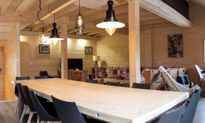Christelle and Philippe are pleased to welcome you to their cottage "le cabanon" located in the heart of the village of Corrençon en Vercors at the foot of the slopes & the ski school (100m). This new 155m² large capacity chalet will allow you to spend a pleasant stay with friends or family. Its location will allow you to leave your vehicles during your stay, (mountain bike rental, restaurant, shop, shuttle departure within 50m). The large living room of 50m² is ideal for recharging your batteries in its lounge area furnished with its large sofa that can accommodate all of the guests; the modern fully equipped kitchen with its large table will bring you the conviviality of meals with friends or family. You will also appreciate its rooms equipped with each of their bathroom for optimum comfort. Some rooms are modular according to your requests.
