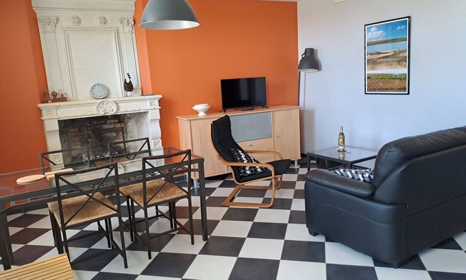 Our "Little Barrier", of 60 m² on two levels can accommodate up to 5 people, between traditional and contemporary style, it includes two attic rooms with exposed beams. The bedrooms are upstairs and accessible by a staircase. Young children must be accompanied to take this staircase and the security barrier used. On the ground floor a large bright and functional living room.