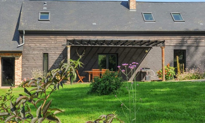 Ground floor: - well equipped kitchen, - wc, - lingerie (washing machine and dryer, shower), - large living room with fireplace (wood offered), TV with decoder dish with HDMI, 4G Internet box. Upstairs: - 2 bedrooms (1 double bed 160 x 200 cm), one with adjoining shower room-WC, - 1 bedroom for 2 people (2 beds 90x190cm), - bathroom (bathtub), - wc. Complete baby equipment. Perched above the Durdent valley, this gite offers an exceptional view over the wooded valley and the village. This independent house, with open garden, far from traffic, but pedestrian access to the village at 500 m. Its warm and refined decoration is full of charm: beautiful regional furniture, warm materials, professional kitchen (5-burner piano, large oven, old fridge cabinet, food processor, merchant scales), upholstered armchairs, old doors and locks, antique objects, lovingly cared for details... Leaving from the village, the Basses Eaux circuit, a greenway passable on foot and for all non-motorized vehicles, takes you to the Véloroute du Lin, as far as Fécamp or Dieppe, London, Paris... Rental charges not included in your rental: - electricity billed at cost price according to consumption beyond 8kwh/day), - heating, - Household chores, - bathroom linen, - the tourist tax. Fireplace, Television, Electric heating, Baby bed, bathroom. (bath), Sheets provided, Internet connection, Private parking, Washing machine, Dishwasher, Cleaning fee, Garden, Charm, Tumble dryer, Microwave, Flat screen TV, Freezer, Garden furniture, Barbecue, Detached house . Unless stated, services such as cleaning, bed linen, towels etc. are not included in the price of this rental. If pets are allowed (information in the advertisement), charges may be applicable. Only equipment mentioned in this advertisement are present. Equipment not mentioned are not considered to be present.
