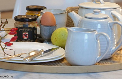 On the second floor of the owners' house (shared access with the owners): Dining room with living room and fitted kitchen. Bedroom area (separated by curtains) with double bed 180 x 200 cm. Non-partitioned bedroom with 2 beds 120 x 200 cm. Shower room with wc. Shared enclosed garden with shelter for bicycles or motorbikes. 2 guest rooms including a suite on the 1st floor can be rented in addition. Provision of a room for 24 people of 100m2 with supplement on request. Possible reservation of reflexology session with supplement on request. Loft of 120 m² with a soothing atmosphere accessible by a vertiginous staircase, as if suspended, under the framework of a residence of character. Monika was able to unearth decorative objects, signed furniture and paintings by artists that have found their place perfectly in this former police station. On the edge of the national forest, you can join the nearby greenway by the paths. Located between Alençon and Le Mêle sur Sarthe, all activities, shops and services are less than 10 km away: horse-riding centre, karting, leisure centre,... WIFI, Enclosed grounds, Washing machine, Television, Dishwasher, Baby equipment, Mid-Week, Heating included, Sheets included, Tumble dryer, Barbecue, Garden furniture, Microwave, Freezer, DVD player, Cleaning included, Household linen, Terrace, Garden, Charm, Electric vehicle recharge, present tourinsoft, present poplidays, mail ok. Unless stated, services such as cleaning, bed linen, towels etc. are not included in the price of this rental. If pets are allowed (information in the advertisement), charges may be applicable. Only equipment mentioned in this advertisement are present. Equipment not mentioned are not considered to be present.