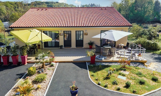 From the private terrace, enjoy breathtaking views, including the viaduct and Saint-Sacerdos Cathedral—perfect for savoring breakfast in a charming atmosphere.