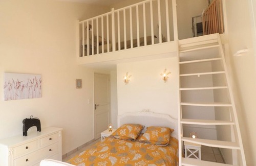 This cottage benefits from a large enclosed plot of land with a private heated swimming pool of 11X5m open from June 1 to September 14, 2024, a pétanque court, a ping-pong table and a swing, a terrace of 45m² with panoramic view, garden furniture, barbecue and deck chairs. On the ground floor, bright living room with flat screen TV and internet access, fitted kitchen area, bathroom with closed WC, 1 bedroom with 1 double bed. On the mezzanine accessible by a removable ladder from the bedroom, 1 single bed. Beds made on arrival, towels and pool towels provided. Gas central heating included. Prices all charges included.