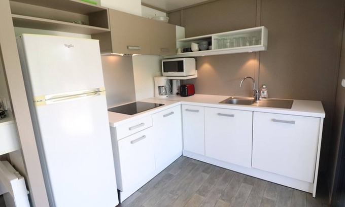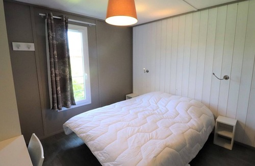 It is equipped with a fitted kitchen area, a living room with a 1-person sofa bed, flat-screen TV, a bedroom with a 160X200 bed, a bedroom with 2 90X200 beds, a bathroom and a separate toilet. Electric heating included. Options (sheet rental, towels, cleaning fee) must be reserved and paid before arrival with the reservation service. Moulin du Teil lake located opposite the chalet, currently being emptied.