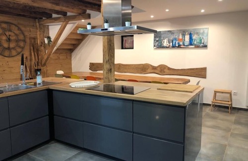 “Large capacity” fitted kitchen: American fridge, two dishwashers, two ovens, raclette, fondue…