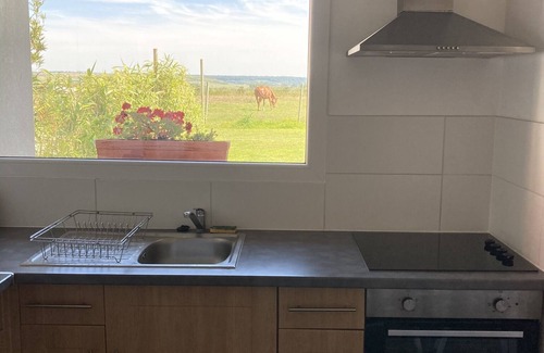 The holiday home is completely renovated, with a direct view of the meadow and the horses from your terrace and private garden.