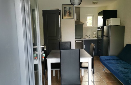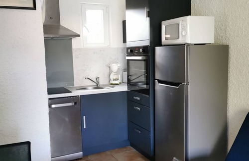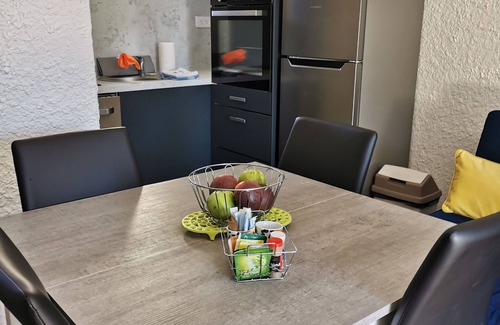 The kitchen is equipped with an oven, a stovetop, and a refrigerator, as well as a coffee maker, an electric kettle, and a microwave. And you can even travel light because you'll have access to laundry facilities. Other amenities include a BBQ grill, heating, and a dining table.