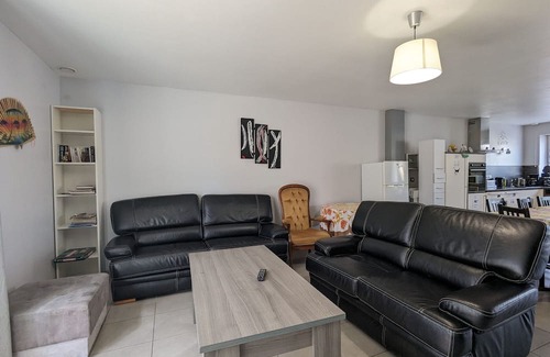 On the ground floor, equipped kitchen, spacious living room and dining area - separate toilet - "Beige" bedroom (1 double bed) with its bathroom and toilet.