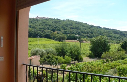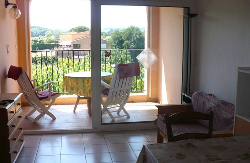 Studio in house of 5 accommodation including 3 Gîtes on a vineyard. Covered terrace, common ground, garden terrace. 3 km from the sea. Many activities near the Gulf of Saint-Tropez and the famous St Tropez Cogolin pie. Saint-Tropez the most famous Mediterranean paradise. Enjoy the quiet off-season visit the Gulf at your own pace. First floor: living room corner-kitchen, mezzanine a double bed (140cm), shower room with wc. Electric heating. Local tax available.