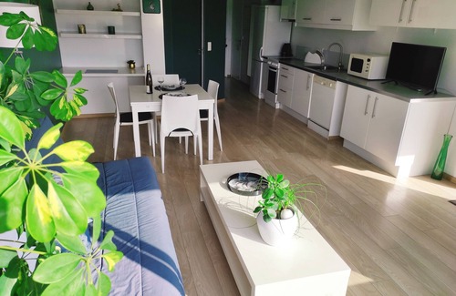 A living room and a desk are featured at this 1-bedroom, 1-bathroom rental. Bathroom amenities include a hair dryer and shampoo. Prepare a home-cooked meal in the kitchen, complete with an oven, a stovetop, and a refrigerator, as well as a coffee maker, an electric kettle, and a microwave. And you can even travel light because you'll have access to laundry facilities.