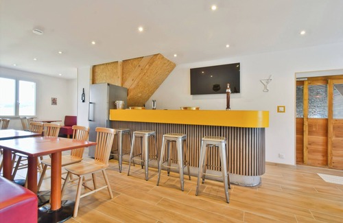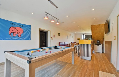 You can enjoy a heated indoor pool kept at 29°C, perfect for relaxing any time of the year. For social moments, a bar with a pool table is available, along with two TVs and various game areas for all your entertainment needs.