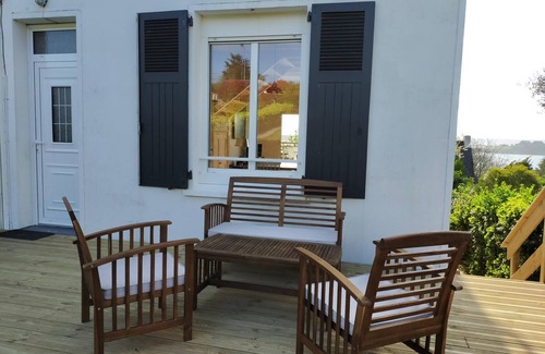 This cottage, classified 4 ears Gite de France, will seduce you with its calm and its panoramic sea view from the living room and the bedrooms. Located near Camaret, Crozon, Morgat.
