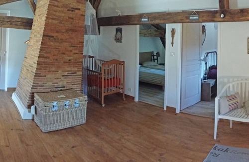 In the heart of nature, enjoy the calm of the countryside in our old Champagne farm renovated into an ecological gîte with the “Green Key” label. Our farm is located in a very quiet hamlet surrounded by forests and meadows, ideal location for hiking, cycling or nature observation and very close to Lac du Der with its many activities (5 km). We renovated this half-timbered farmhouse, highlighting traditional local architecture and using healthier, eco-friendly, eco-friendly materials. The sober and careful decoration gives you a warm atmosphere in an authentic setting but with all modern comfort. - Ground floor: a large fully equipped kitchen (wood stove, TV), a living room (sofa bed, TV, Bluray), 2 private bedrooms (140X190 beds), a bathroom and a separate toilet. - First floor: 2 bedrooms (2 180X200 beds or 4 90X200 beds), a living area with 2 sofa beds (TV, DVD) and a baby bed with mosquito net. Capacity: approved 2 ears of corn for 6 people, our cottage can accommodate additional people (10€ per person/day beyond 6 and up to 8). At your disposal, a large reserved parking lot in the farm courtyard, a secure storage room, a sheltered hangar (not enclosed) for trailer parking, a private terrace with barbecue with 500 m² of lawn (not enclosed), a massif of spices and flowers as well as vast common green spaces made up of an orchard, a garden and a wooded plot of magnificent oaks with cabins, hammocks... With a little patience, you will observe the deer eat in our donkey's enclosure and with luck, they will pass in front of your terrace! ELECTRICITY AND WOOD: 8KWH electricity free/day, beyond that pay the supplement on site. Wood: €60 per stere (Estimate based on consumption €30 on average/week.) Pay on site. EQUIPMENT: - Hifi: 3 flat screen televisions, 1 CD/DVD player, 1 Bluray/DVD, radio. - Telephony: unlimited on landlines in France (on request for mobiles and abroad). - Internet (free): WIFI and a network socket (RJ45). - Household appliances (modern and economical): ceramic hob, coffee maker, toaster, kettle, crepe/raclette maker, waffle iron, iron and ironing board... - Bedding: recent mattresses (duvets and pillows provided, linen on request). - Heating: electric radiators and high-performance wood stove. - Security: closed storage room, smoke and monoxide detectors, guardrails. - Games for children: climbing frame, bikes, scooters, board games, books, DVDs, toys... LIVING ENVIRONMENT : - Equipment provided: household materials and products, compulsory sorting, basic food and sanitary products provided, essential oil diffuser, non-smoking. - Animals on site: 1 donkey, 3 cats, 3 chickens (possibility of renting an electrified park for your animals). - Promotion of garden and local products: vegetables, fruits, fruit juices, wines, champagnes, beers, eggs, milk ECOTOURISM: We respect the environmental charter for ecological and sustainable tourism with very strict specifications of the Clef Verte label: reinforced insulation, renovation with ecological materials, economical household appliances, use of ecological household products, selective sorting of waste, monitoring and limitations energy consumption, rainwater recovery. Mandatory cleaning: €60. Sheets package for 1 person, bathroom and household linen: €12. Sheets package for 2 people, bathroom and household linen: €24. Pets accepted: supplement €30 to be paid to the owner on arrival. - The young and available owner welcomes you in person for a visit to the property. The inventory will be carried out upon your arrival and departure. - Times (flexible on request): arrival at 6 [hidden] / departure at 9 [hidden] in very high season. Please let me know your desired arrival time, knowing that you can arrive earlier and/or leave later if accommodation is available but with my prior agreement only. Late arrival possible with code box to collect keys. Property managed by a professional. Unless stated, services such as cleaning, bed linen, towels etc. are not included in the price of this rental. If pets are allowed (information in the advertisement), charges may be applicable. Only equipment mentioned in this advertisement are present. Equipment not mentioned are not considered to be present.