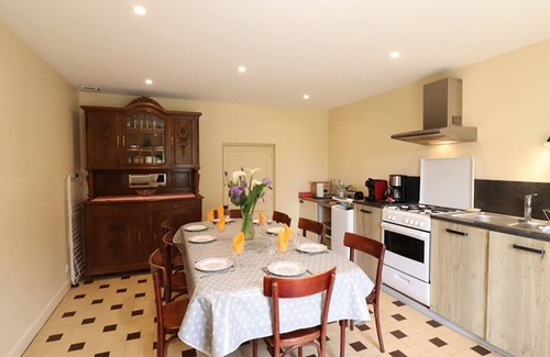 On the ground floor, entrance, kitchen, living room with flat screen TV, DVD player and fireplace with stove (0.2 m³ of wood provided for one week), separate toilet. On the 1st floor, 1 bedroom with 1 bed 160x200 cm, 2 bedrooms with 1 double bed (140 X 190cm), 1 bedroom with 2 single beds (90 X 190cm) and an extra single bed, 2 shower rooms and separate toilet. Wifi internet access. Central oil heating included. Heating prices included except wood. Cleaning deposit €80.