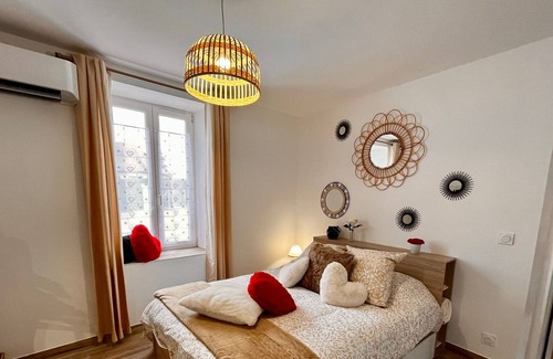 In Berry, in the heart of Champagne Berrichonne and the only town in France to bear the name of the patron saint of lovers, Saint-Valentin. This accommodation is the ideal place to meet up as a couple to discover the communal facilities such as the lovers' garden, the lovers' kiosk, the wishing tree, the willow with hearts and a gourmet restaurant. Renovated private house for 4 people, on the ground floor with private parking. Living room with dining room, living room with a smart TV (a 140x190 cm sofa bed) and a fully equipped kitchen. A bedroom with a 140x190cm bed and a bathroom (90x120cm shower). Private toilets. The owners offer a home meal delivery service (term to be agreed upon arrival). An upcoming provision of a private and enclosed outdoor space (under construction). Unless stated, services such as cleaning, bed linen, towels etc. are not included in the price of this rental. If pets are allowed (information in the advertisement), charges may be applicable. Only equipment mentioned in this advertisement are present. Equipment not mentioned are not considered to be present.