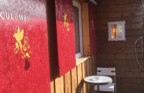 At the rear of the chalet, there is a large terrace on stilts and not overlooked, with deckchairs, table and chairs for meals, and an inflatable 4-seater sheltered jacuzzi lit on request.