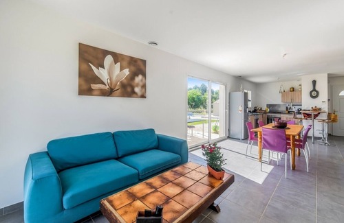 A kitchen open to a bright living room. And finally a terrace where you can enjoy a meal and a beautiful sunset by the pool.