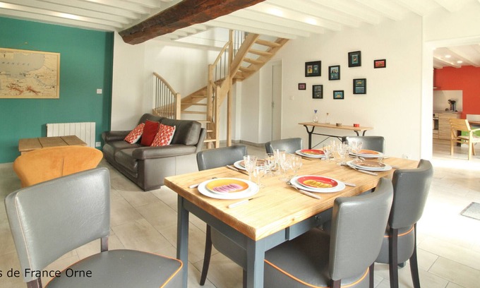 Teleworking possible: High-speed internet connection with the SOSH operator and all telephone operators receive it, 4G telephone coverage. Very beautiful country house in the heart of Perche, very comfortable, in a very quiet environment and 2 km from the nearest shops.