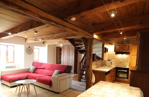 On the ground floor, equipped kitchen area, living room with flat screen TV, DVD player, wifi internet access and fireplace with stove (free wood), bathroom with toilet (ceiling height 1.80m). Upstairs, 1 bedroom with 1 double bed, 1 bedroom with 1 double bed, 1 bedroom with 2 single beds, bathroom with toilet. Electric heating included. Prices all charges included.