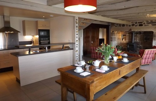 Nestled in a small isolated hamlet in the middle of the mountains, between Riom es Montagnes and Mauriac, this house of character, adjoining an old barn, renovated with respect for the building, welcomes you in a quiet environment with a clear view of the Cantal mountains.